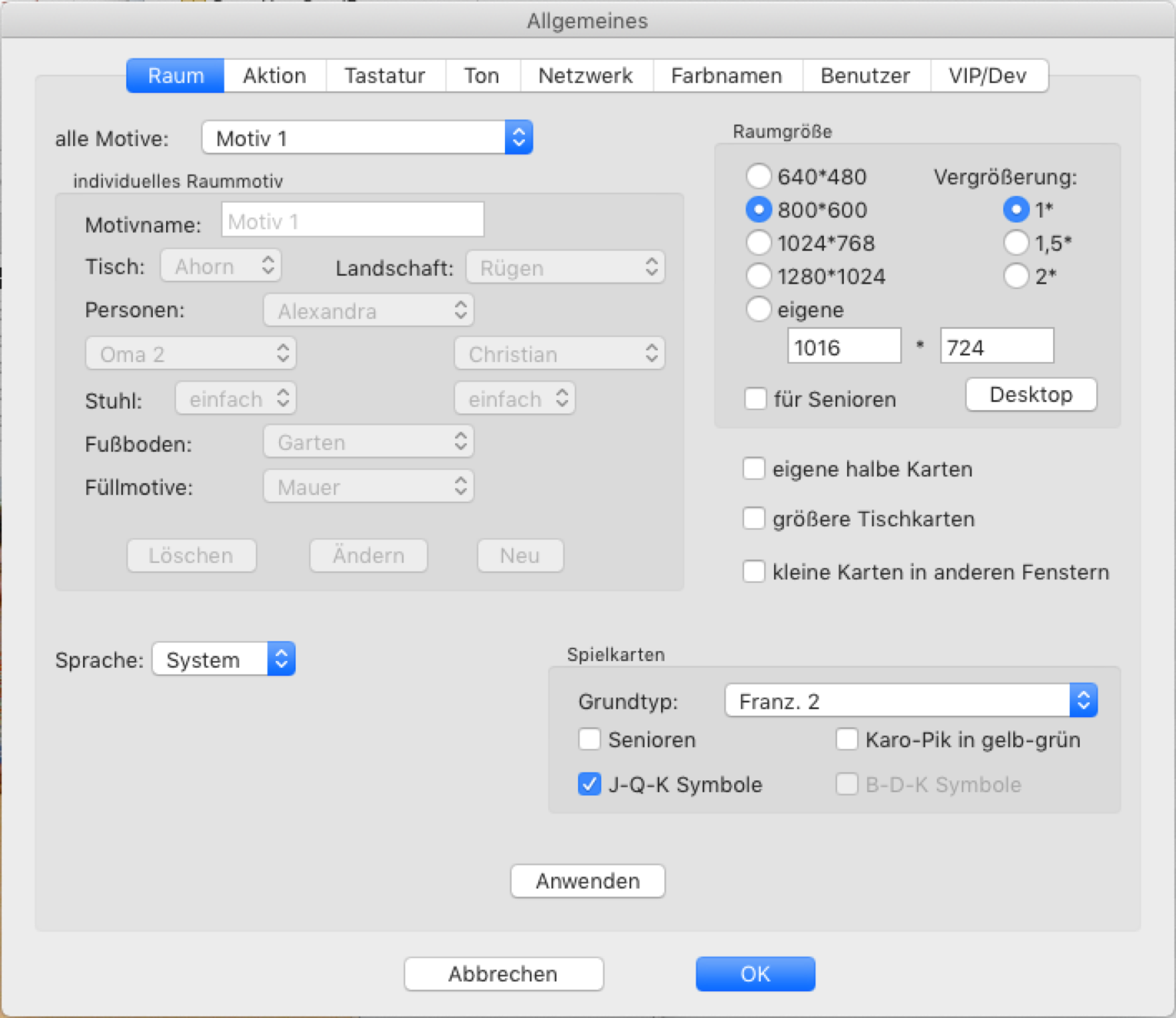 An dieser Stellen können Sie alle allgemeine Einstellungen festlegen oder auch ändern, die vollkommen unabhängig von Ihrem ausgewählten Kartenspiel sind.