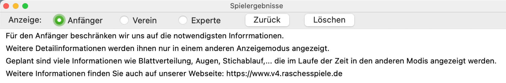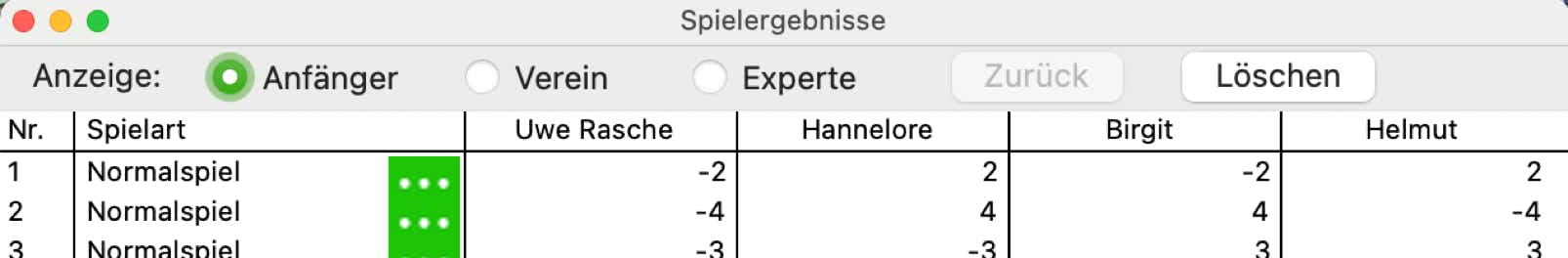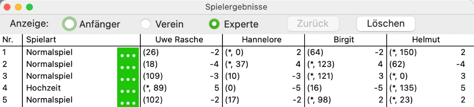 Es werden nur die erhaltenen Punkte in der Anfängeranzeige angegeben oder in der Expertenanzeige mit den zusätzlich erspielten Augen: